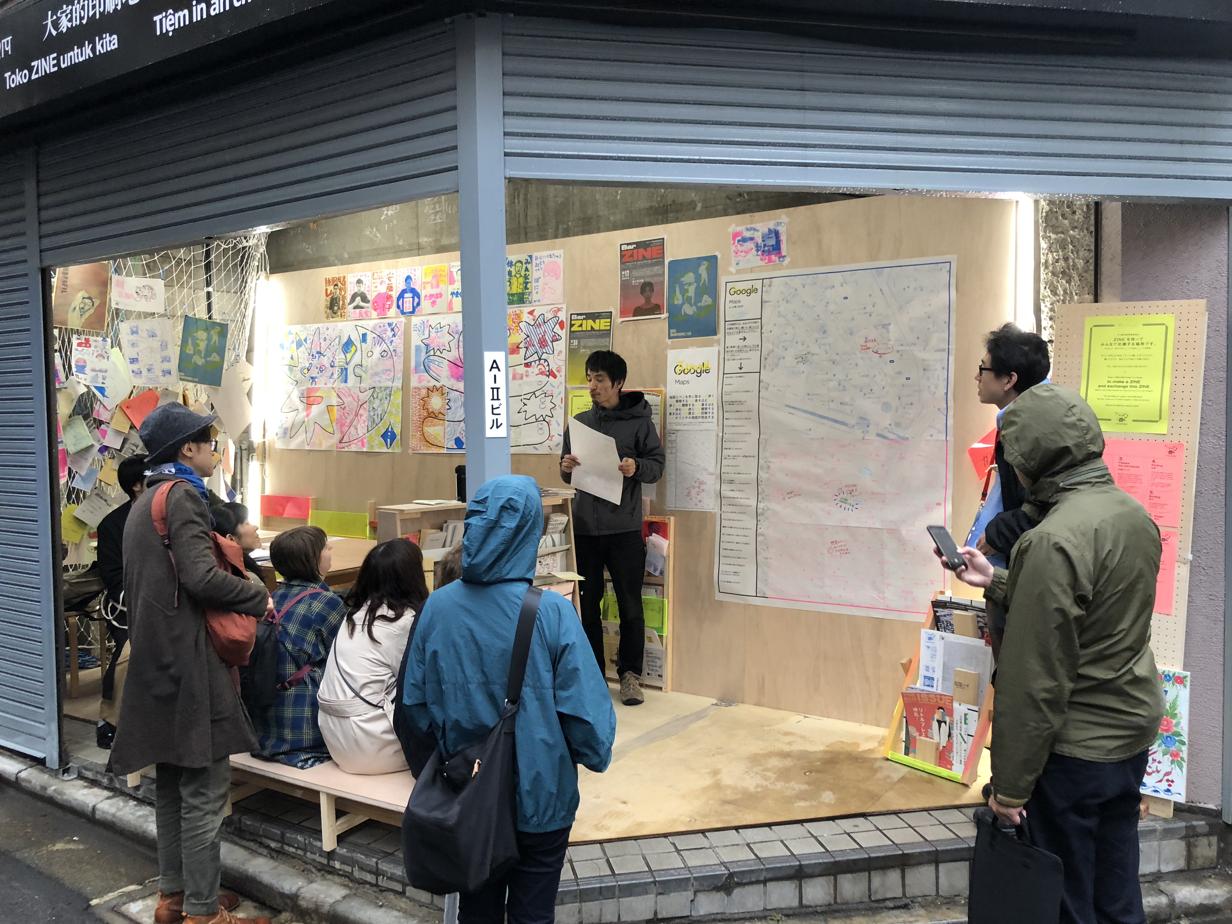 幼稚園でのワークショップが終わったあと、通常のオープンがあり、さらに夜からはBarZINEもあるという、フルで催しがあった1日。最後のBarZINEは向かいのクラフトビールバーでのトークです。